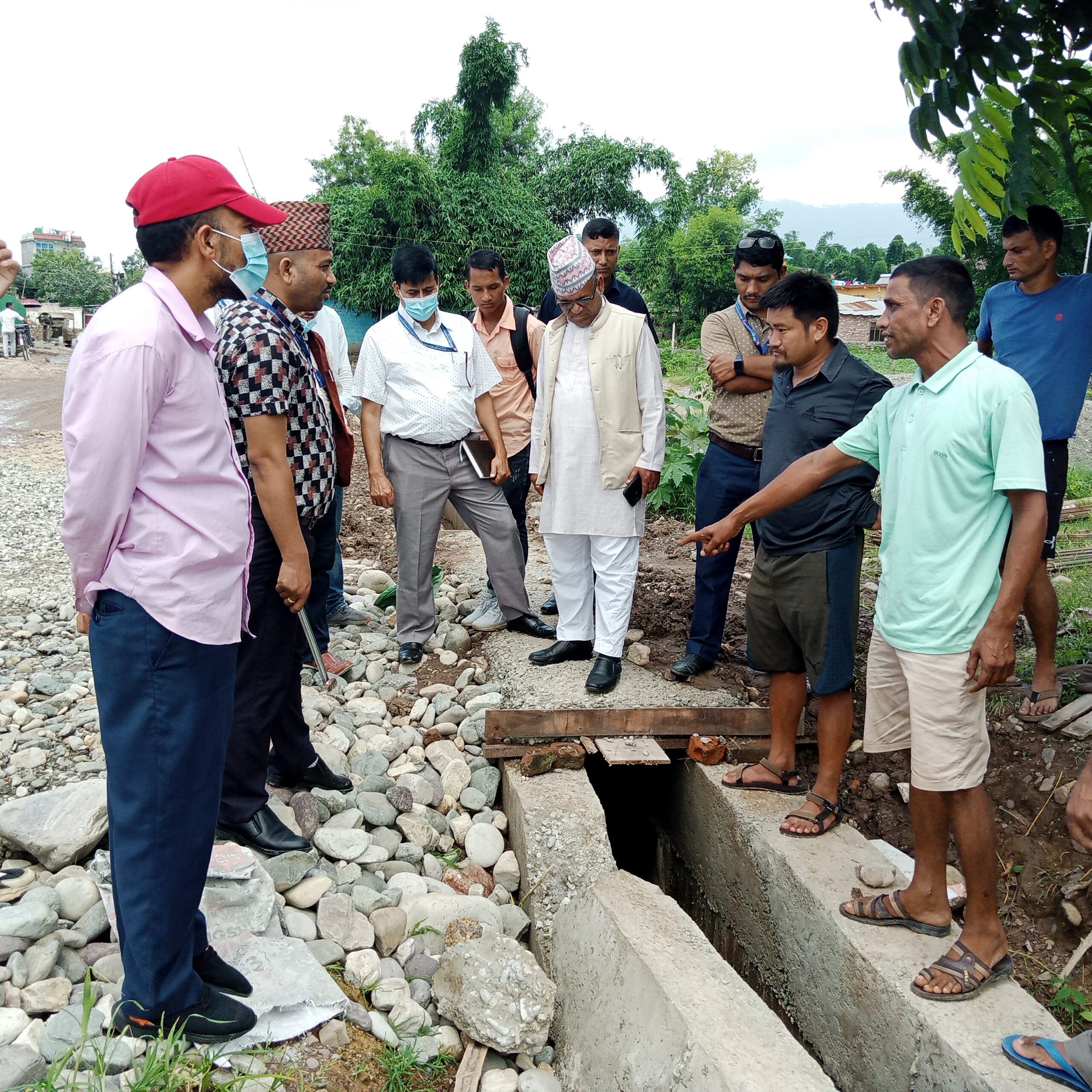 भत्किएको नाला यथाशिग्र बनाउन मुख्यमन्त्री र भौतिक मन्त्रीको निर्देशन