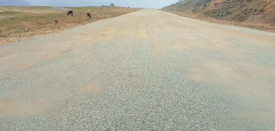 उहाँले भन्नुभयो, “एउटा विमानस्थल बनाउन ३७ वर्ष समय लाग्नु लाजमर्दो विषय हो। विमानस्थल नहुँदा ३७ वर्षसम्म हामीले कति दुःख भोग्यौँ रु” विमानस्थलका अरू संरचना निर्माण सम्पन्न भए पनि कालोपत्रेको काम भने अझै सुरु भएको छैन। सम्झौताअनुसार अघिल्लो आर्थिक वर्षको अन्त्यसम्ममा निर्माण व्यवसायीले विमानस्थल कालोपत्रे सम्पन्न गरिसक्नुपर्ने हो। विमानस्थल कालोपत्रेको ठेक्का गौरीरपार्वतीर श्याम एन्ड शङ्कर जेभीले पाएको छ। ६९० मिटर लामो र ६० मिटर चौडाइको धावनमार्ग कालोपत्रे र नाली निमार्णका लागि निर्माण कम्पनीले १३ करोड ८१ लाख रुपैयाँमा ठेक्का पाएको थियो। निर्माण कम्पनीका प्रतिनिधि कमल केसीले भौगोलिक विकटता र कोरोना महामारीका कारण तोकिएको समयमा काम सम्पन्न गर्न नसकेको दाबी गर्दै आउनुभएको छ। उहाँले भन्नुभयो, “सुरुका दुई वर्ष कोरोनाका कारण काम गर्न सकेनौँ। कालीकोटको पनि विकट ठाउँ र मौसमी प्रतिकूलताका कारण समस्या हुँदै आएको छ ।”
