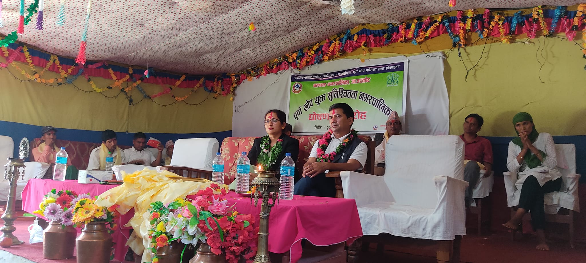 जाजरकोट , १० भदौ ः नलगाड नगरपालिकालाइ पूर्ण खोप यूक्त सुनिश्चितता पालिका घोषणा कार्यक्रममा नगरप्रमुख डम्वर रावत , उपप्रमुख सरिता सिंह लगाएका सहभागीहरु ।