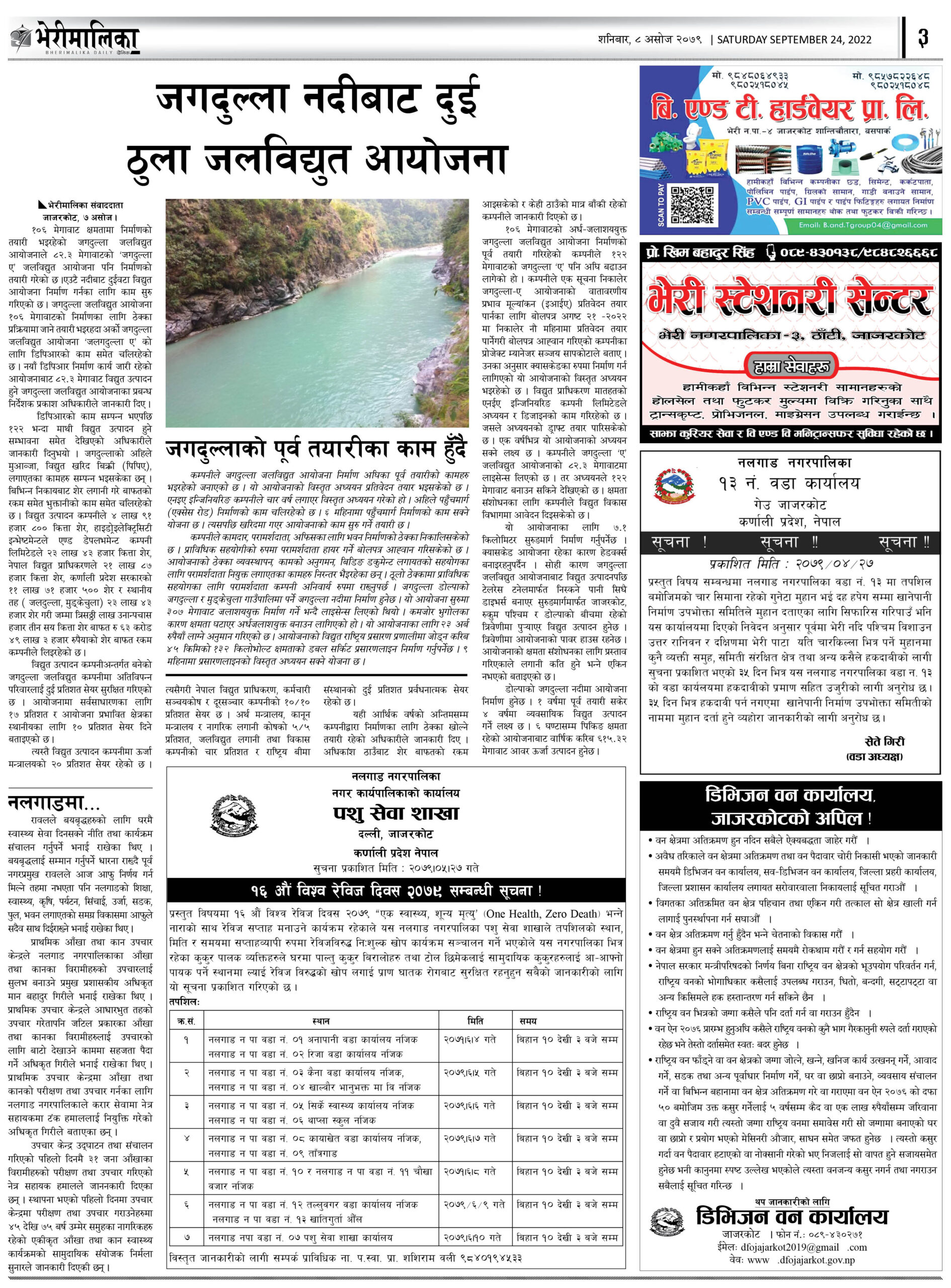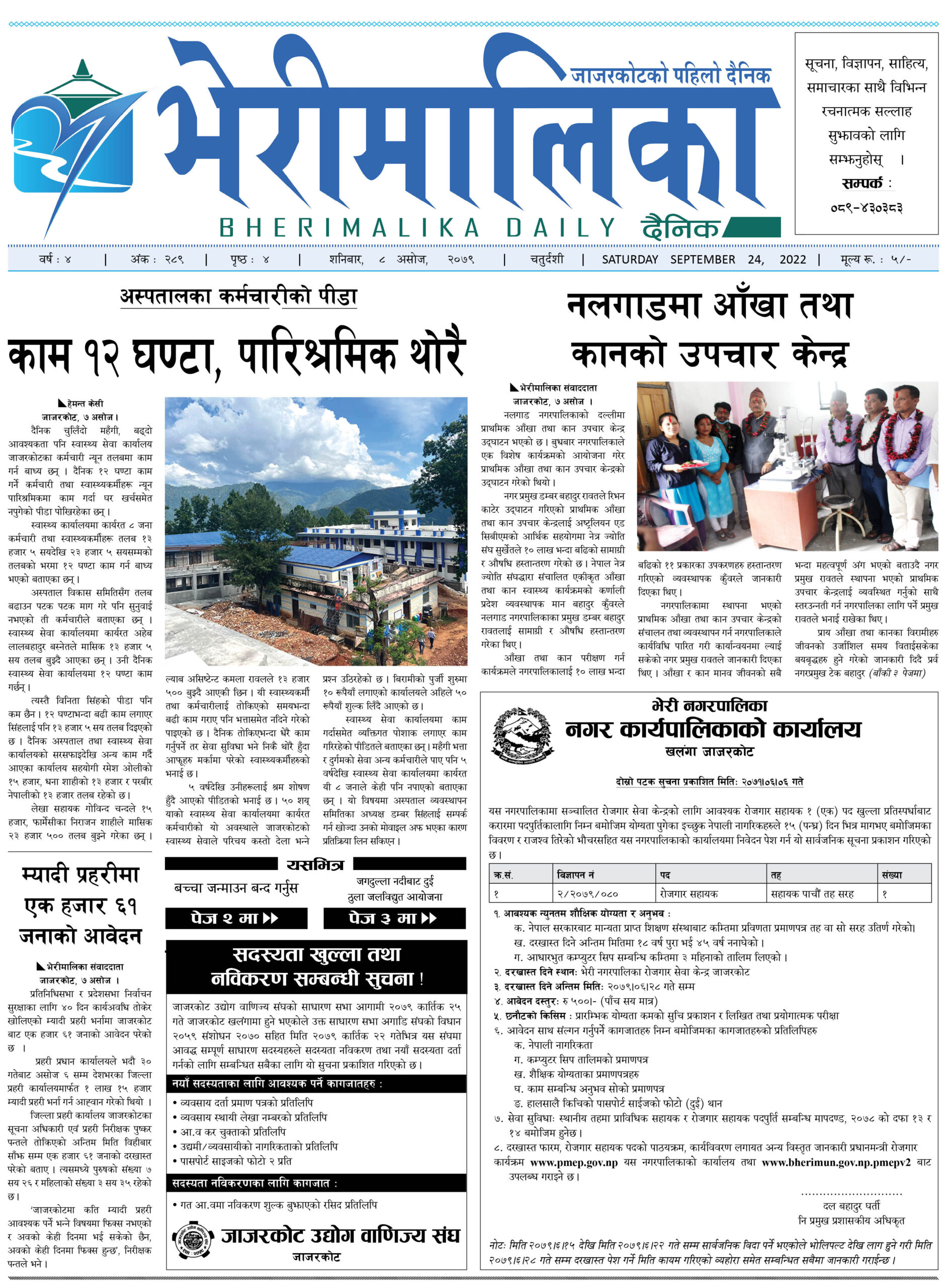 जाजरकोट ः जगदुल्ला जलविद्युत आयोजना देखि स्वास्थ्य सेवा कार्यालयका करारका कर्मचारीको पारिश्रमिक सम्मको समाचारलाई प्राथमिकता दिएर छापिएको छ ।