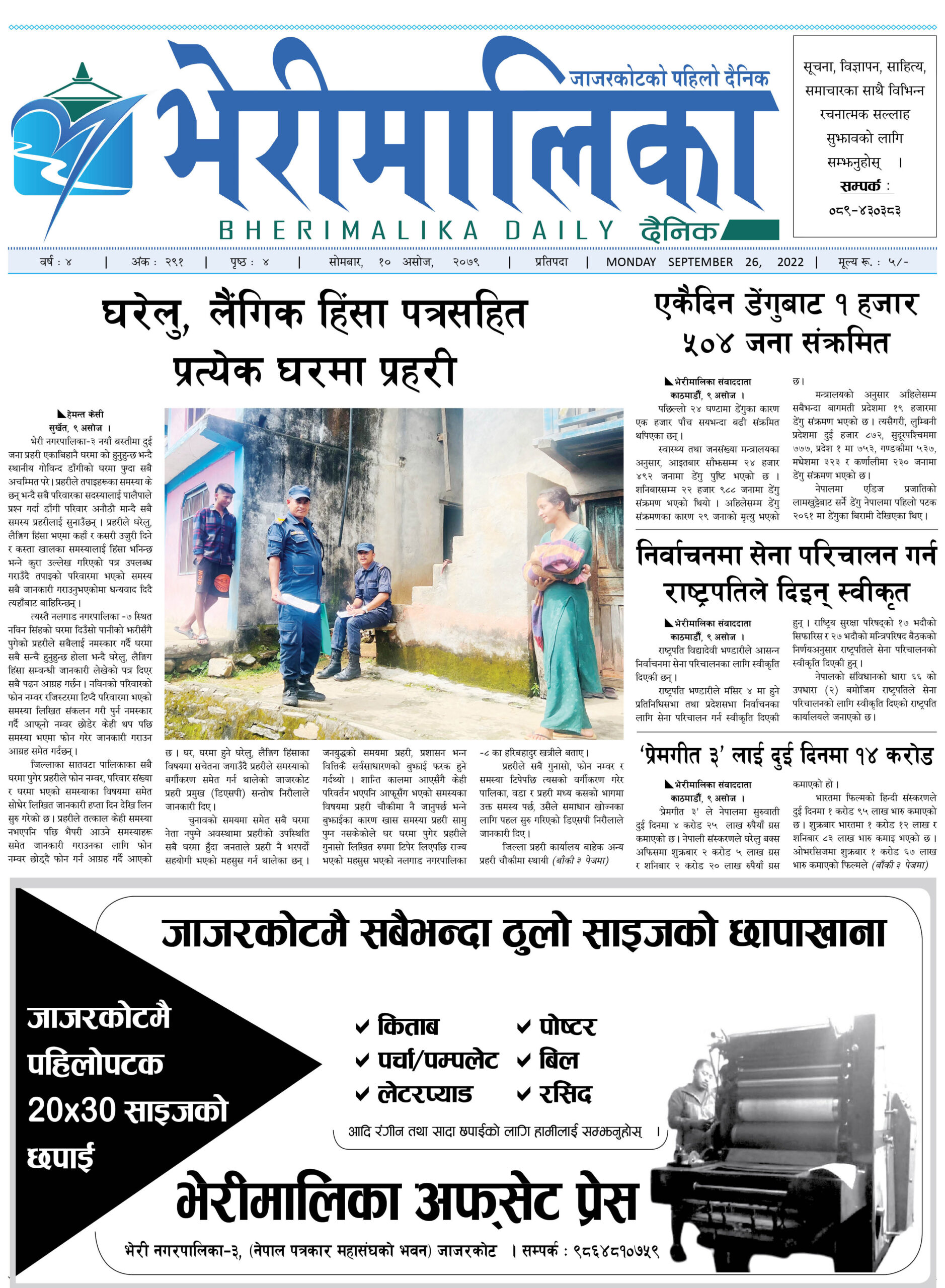 आजको भेरीमालिका दैनिकमा के छापियो ?