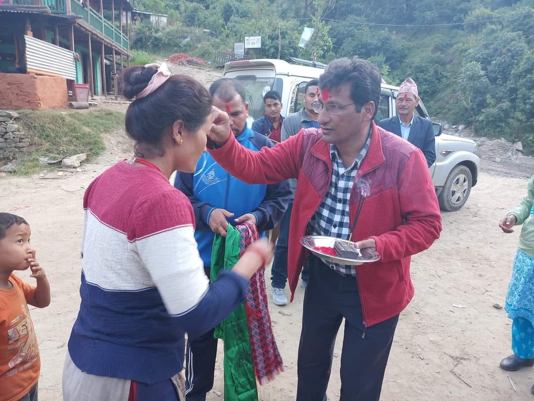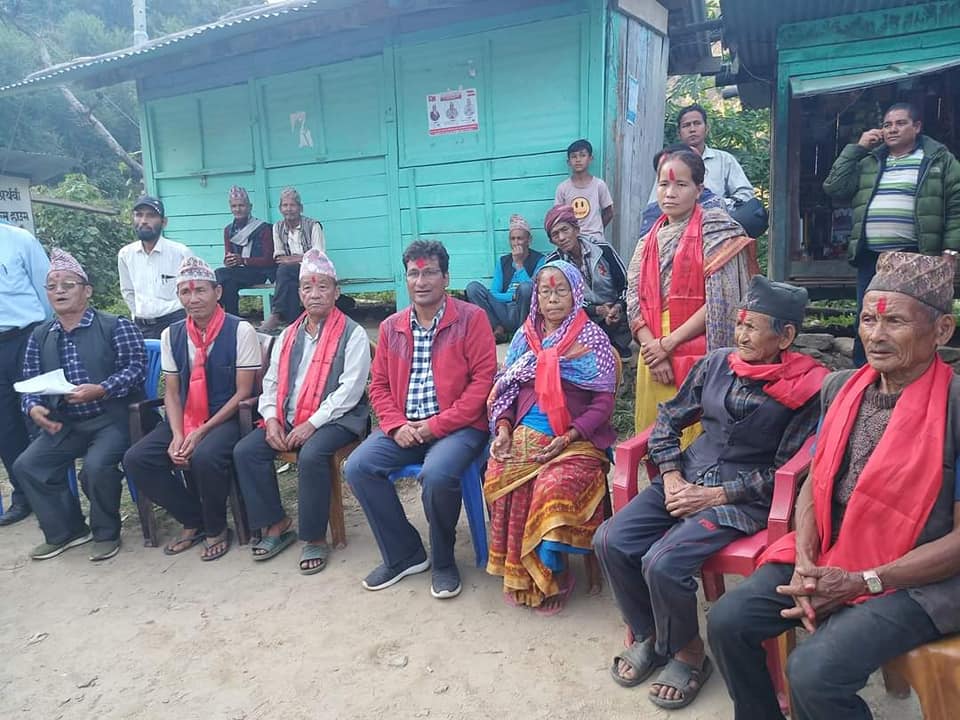 स्थानीयवासीसँग छलफल गर्नुहुँदै पुर्वमन्त्री बस्नेत