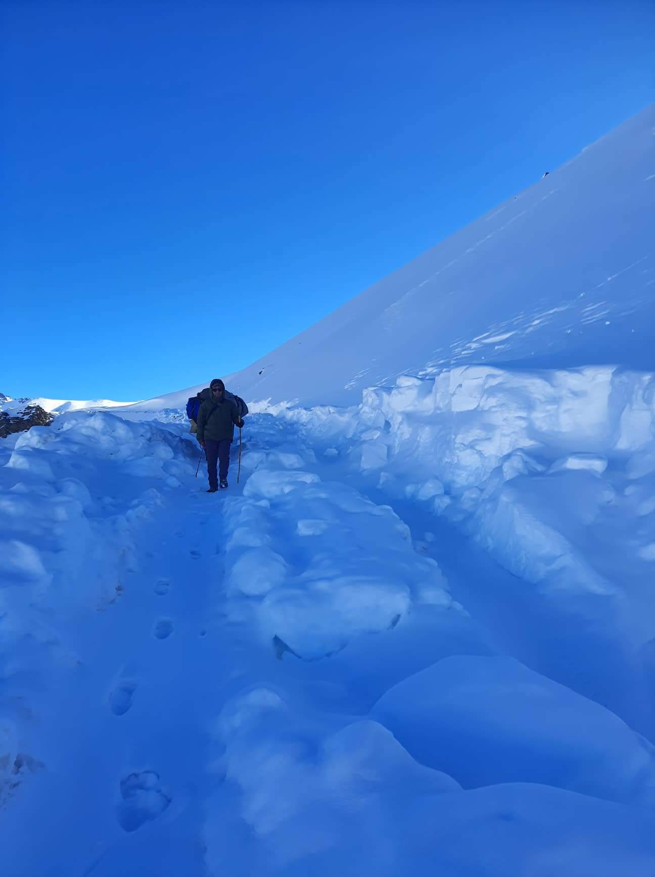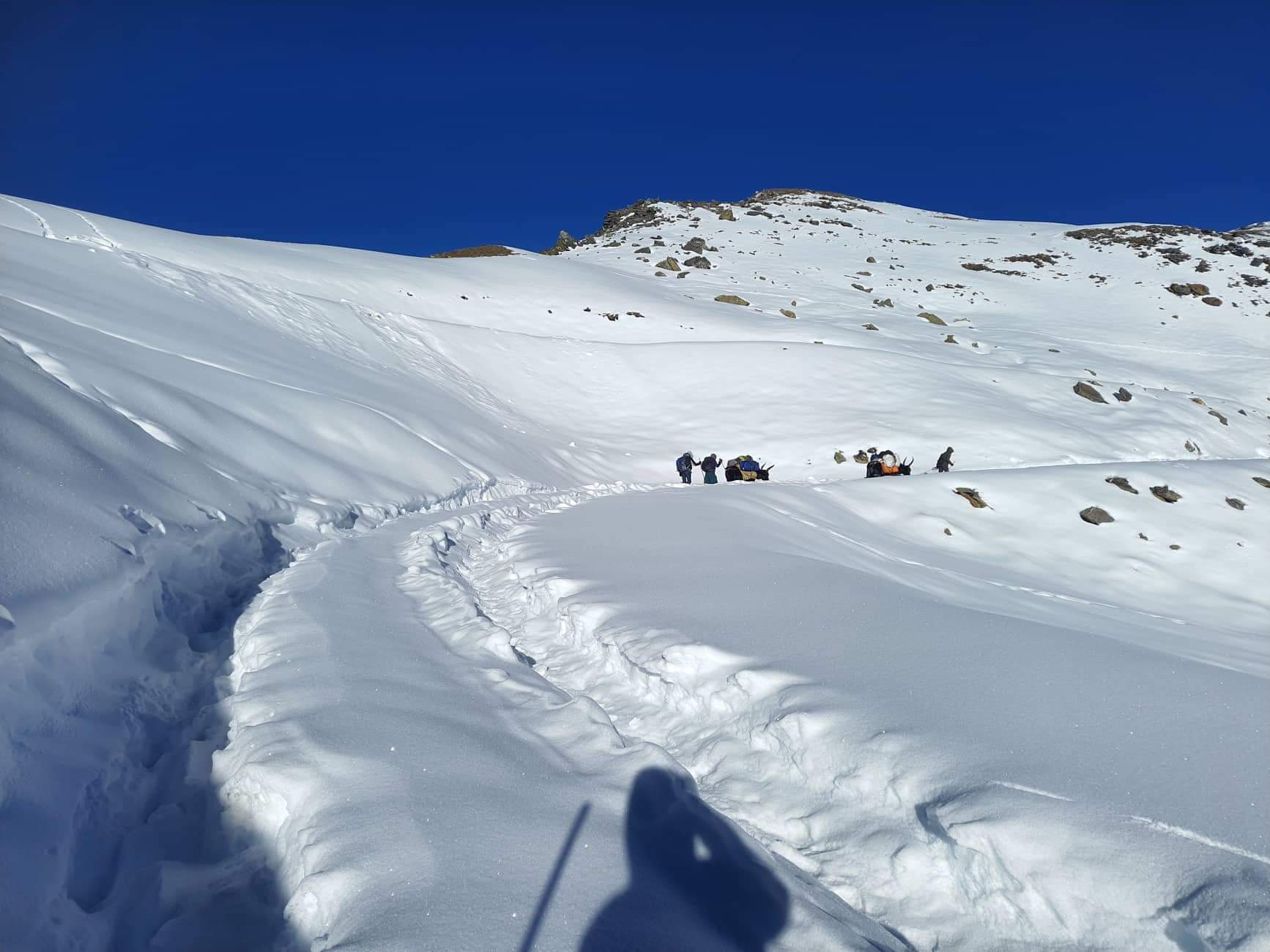 हुम्लाको लिमिमा बाक्लो हिउँ जमेकोले यातायात सेवा ठप्प छ । नाम्खा गाउँपालिका ६ का वडाध्यक्ष पाल्जोर तामाङ हिउँ छिचोल्दै वडा कार्यालय लिमि पुगेका छन् । ५ हजार २ सय मिटर उचाइँमा रहेको न्यालु लेख पार गरि सकसपूर्ण रुपमा हिउँ छिचोल्दै उनी पैदल लिमि पुगेका हुन् । अहिले यस क्षेत्रमा तीन फिट हिउँ जमेपछि आवतजावतमा समस्या भएको नाम्खा गाउँपालिका(६ का वडाध्यक्ष तामाङले जानकारी दिए ।
