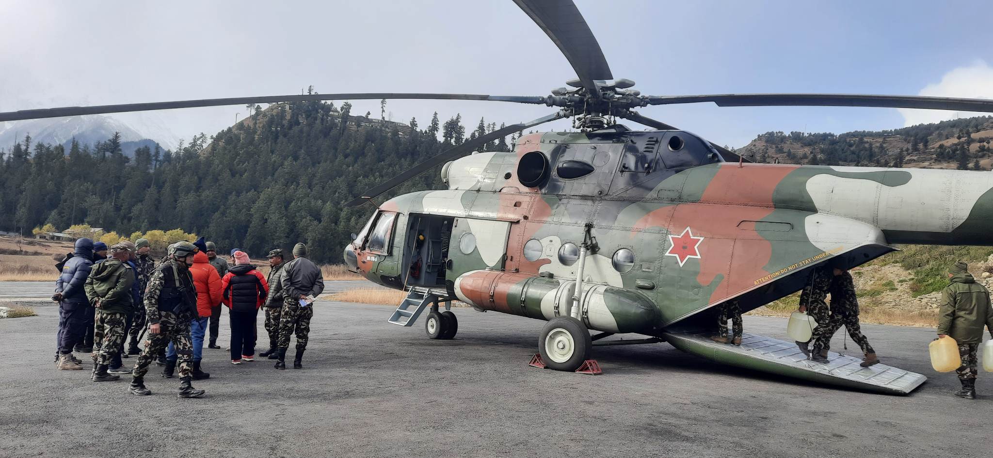 कर्मचारीसहित मतपेटिका ढुवानीका लागि सेनाको हेलिकोप्टर हुम्ला पुग्यो