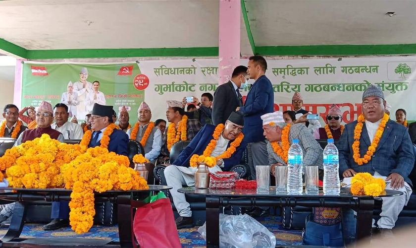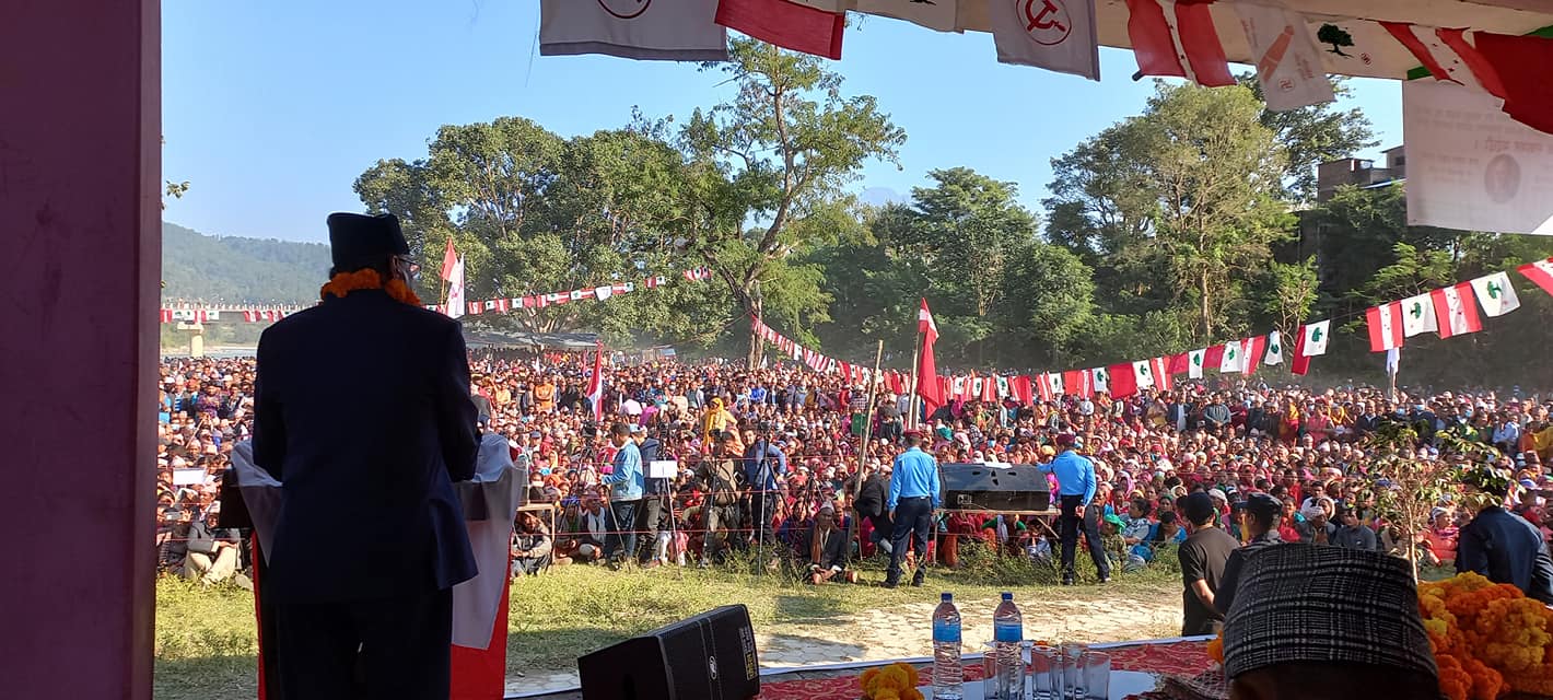 गठबन्धनले सुर्खेतको मेहेलकुनामा आयोजना गरेको संयुक्त चुनावी सभालाई सम्बोधन गर्दै प्रधानमन्त्री देउवाले संसदमा संविधानको रक्षा र गणतन्त्रको संस्थागत हितका लागि गठबन्धनले जित्न आवश्यक रहेको बताए।