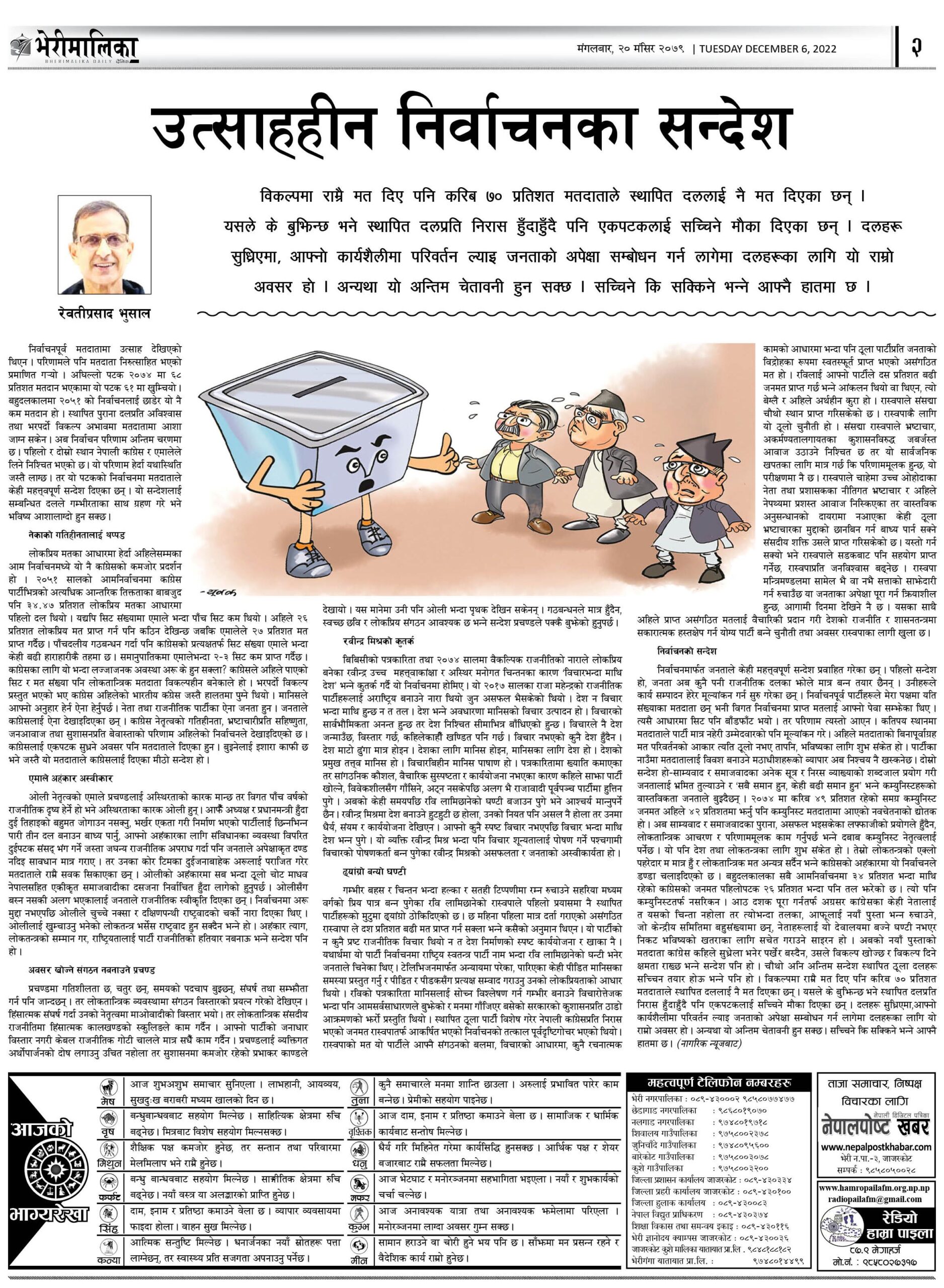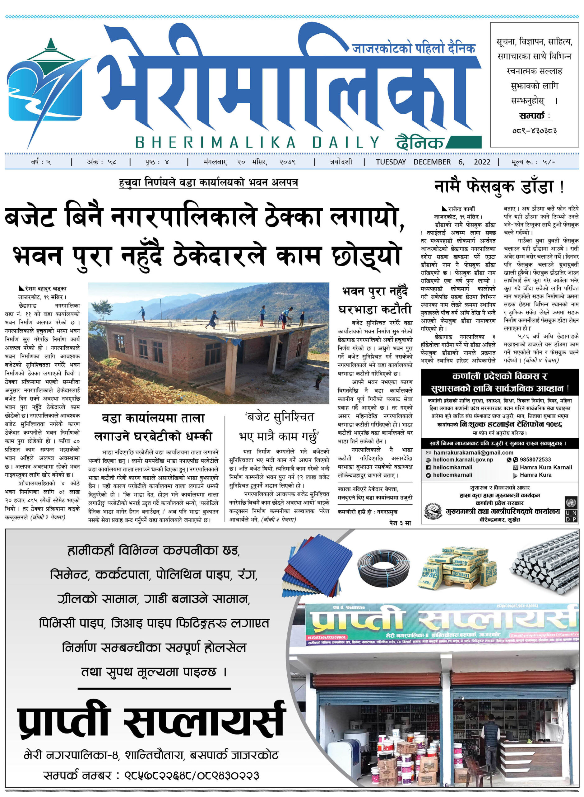 भेरीमालिका दैनिकमा आज के छापियो ? नेपालपोष्ट खबर । २० मंसिर २०७९, मंगलवार ०६:४१ मा प्रकाशित Share this: Share on X (Opens in new window) X Share on Facebook (Opens in new window) Facebook