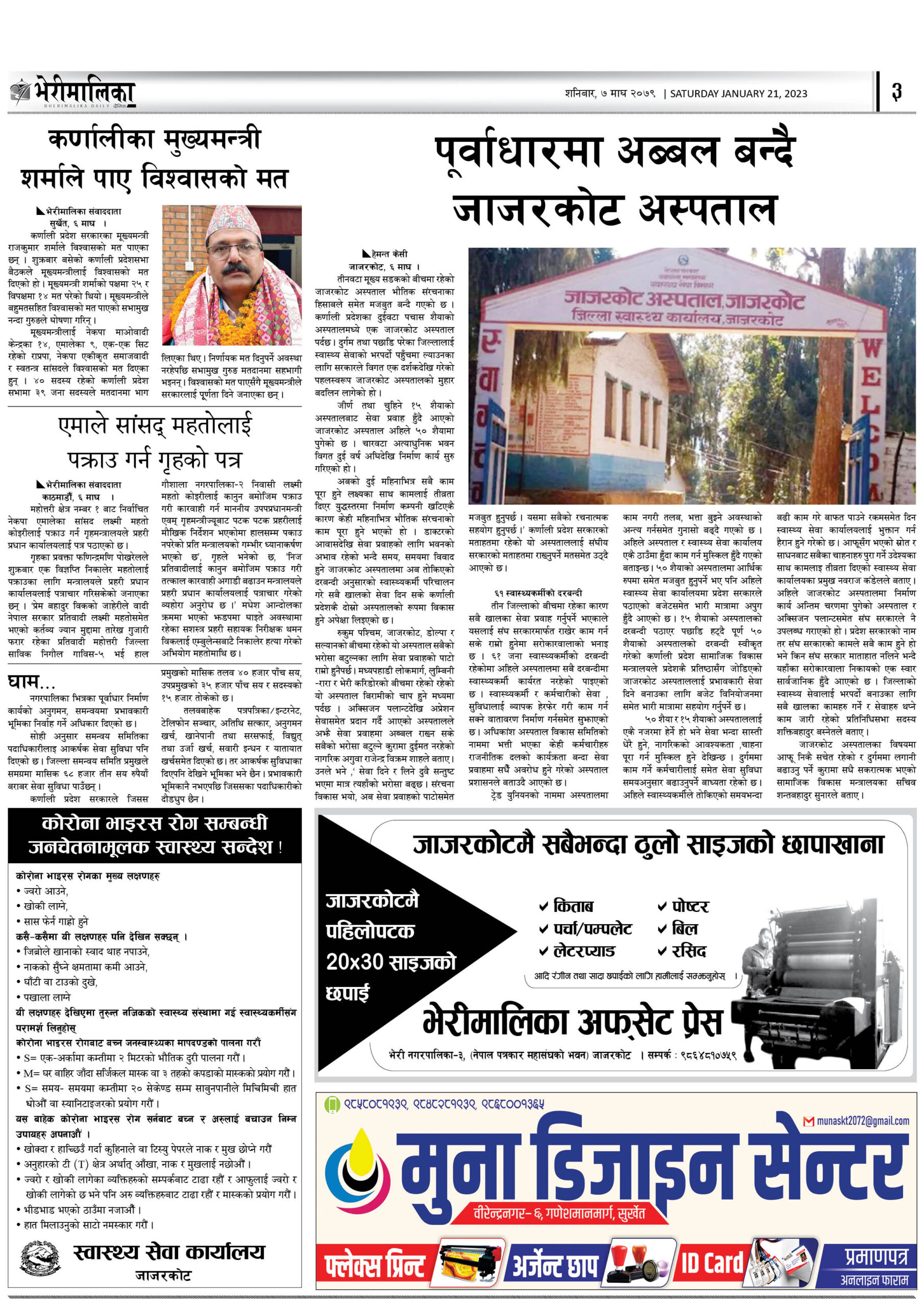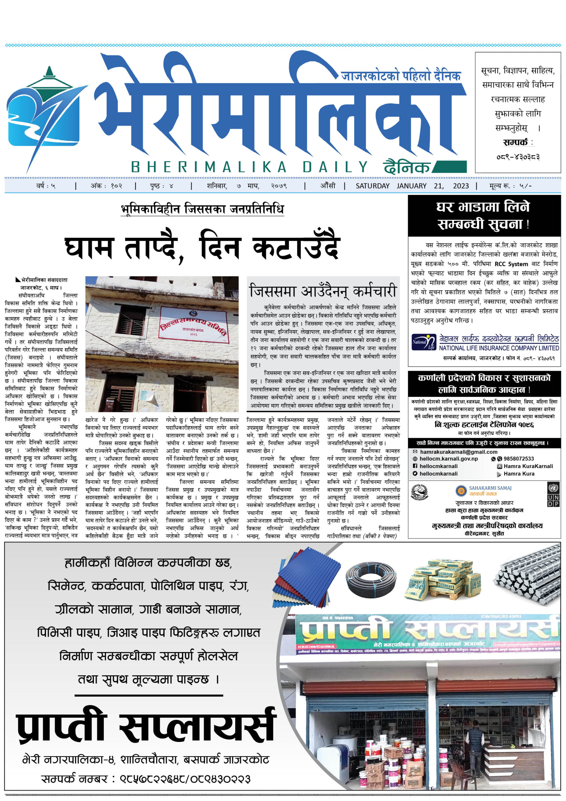 आजको भेरीमालिका दैनिकमा के छापियो ? नेपालपोष्ट खबर । ७ माघ २०७९, शनिबार १०:३६ मा प्रकाशित जाजरकोट ः जिल्ला समन्यव समिति जाजरकोटको समाचार पहिलो पेजमा छापिएको छ । Share this: Share on X (Opens in new window) X Share on Facebook (Opens in new window) Facebook