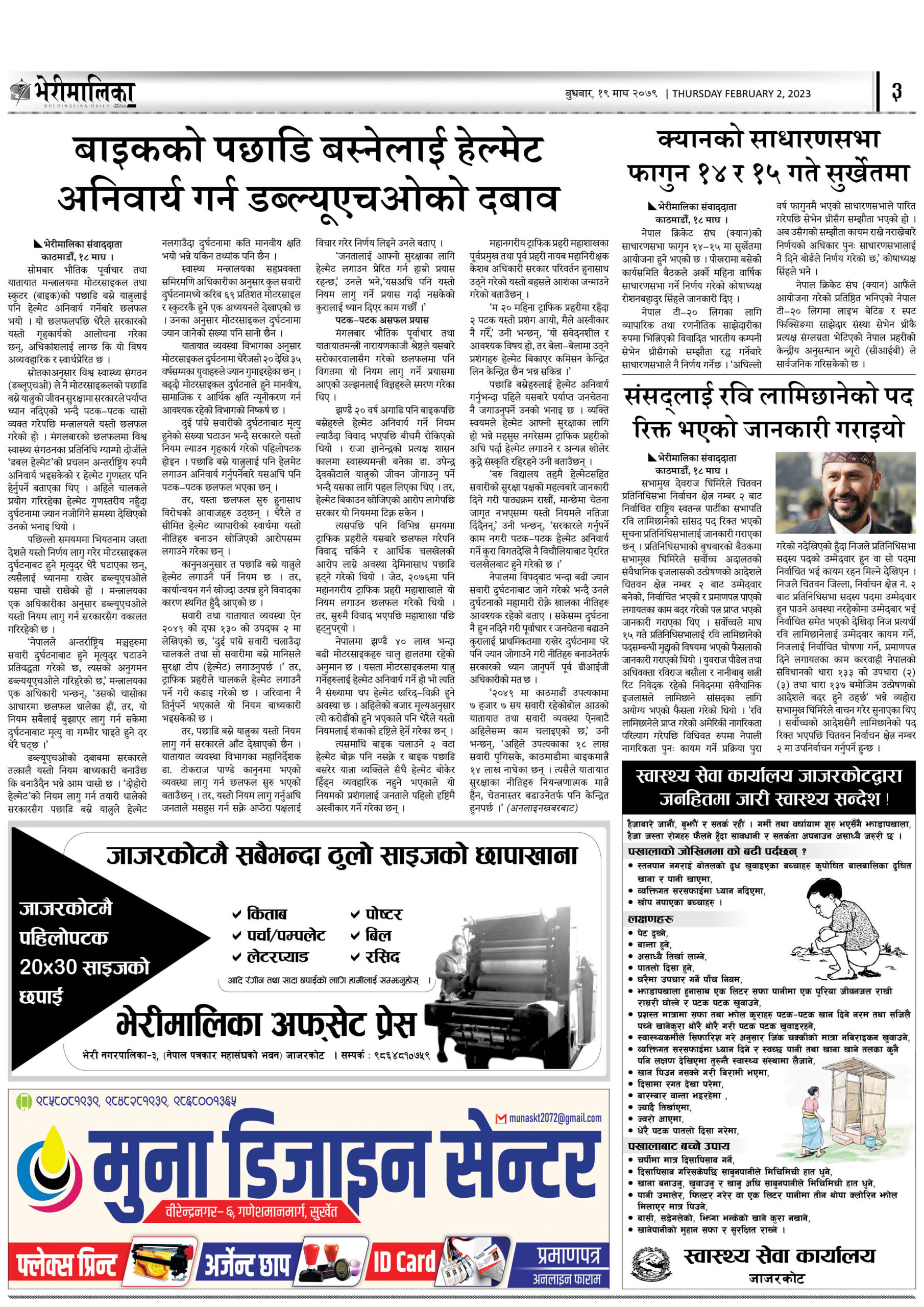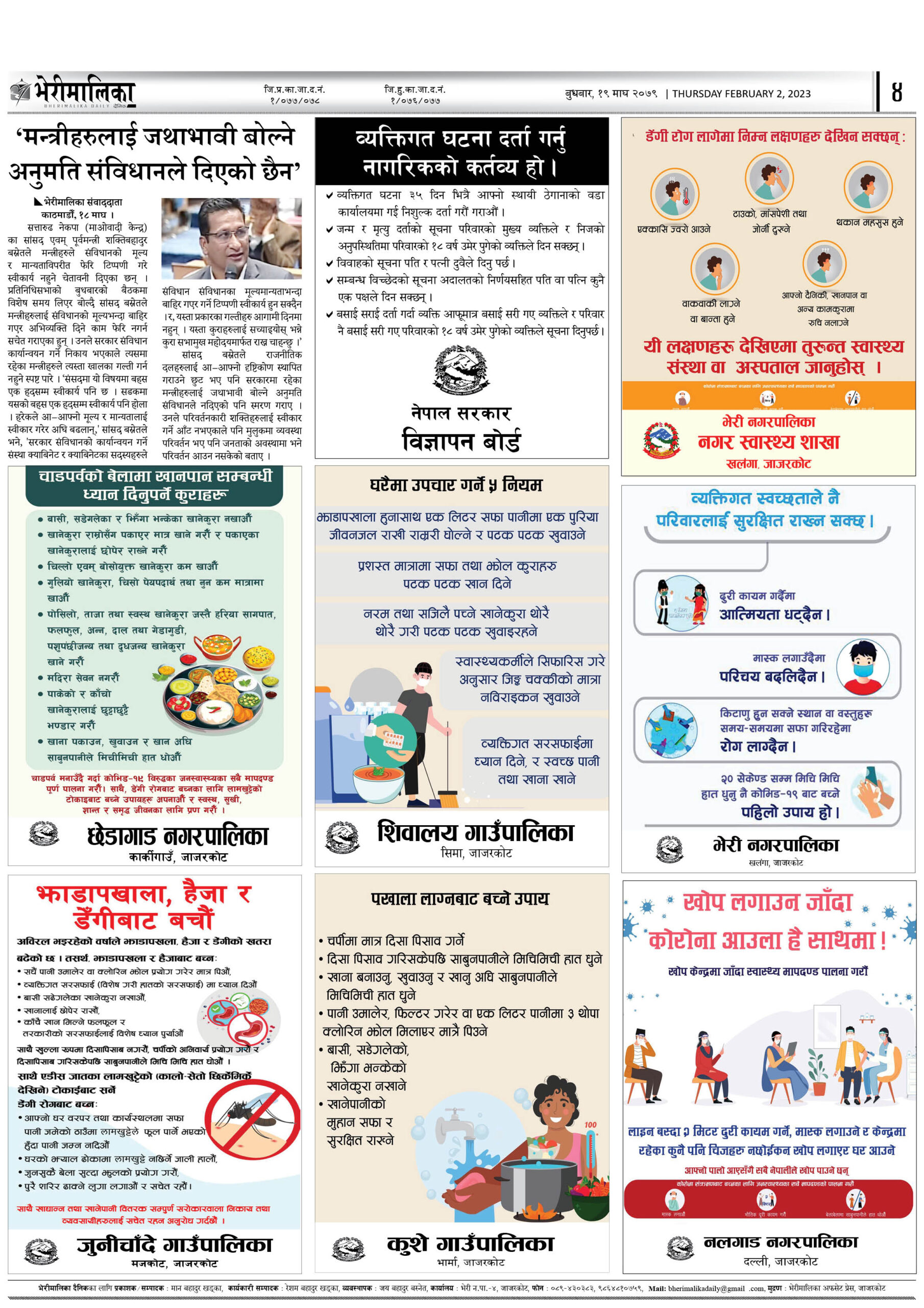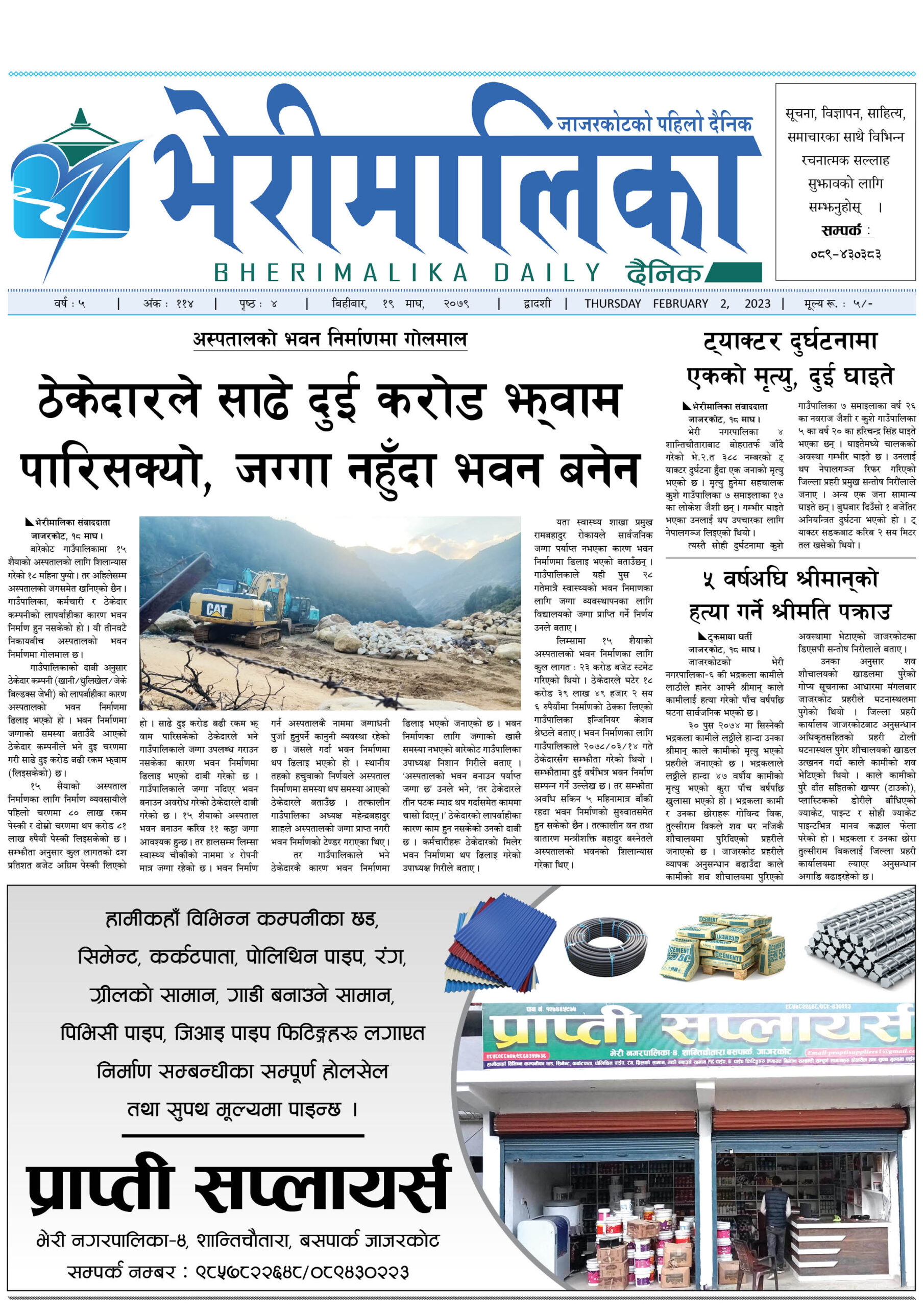 आजको भेरीमालिका दैनिकमा के छापियो ? नेपालपोष्ट खबर । १९ माघ २०७९, बिहीबार ०६:५२ मा प्रकाशित Share this: Share on X (Opens in new window) X Share on Facebook (Opens in new window) Facebook