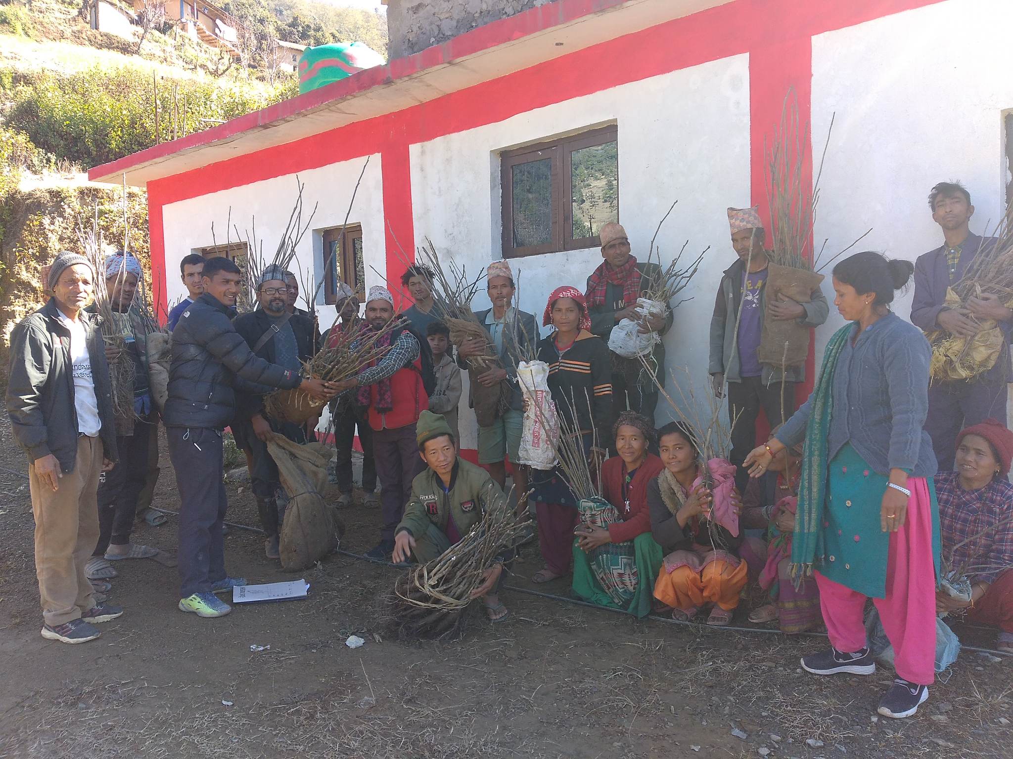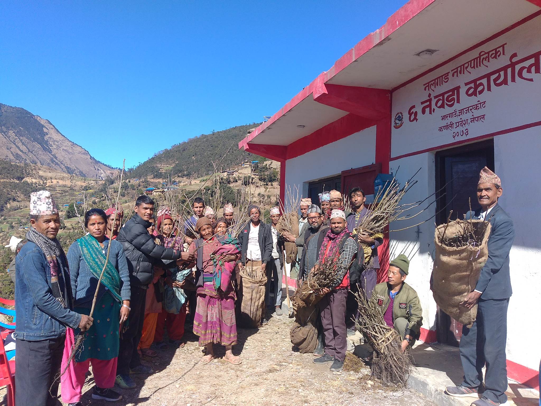 भारगाउँका स्थानीयबासीलाई ओखरको बिरुवा वितरण गर्नुहुँदै वडाध्यक्ष – खड्का