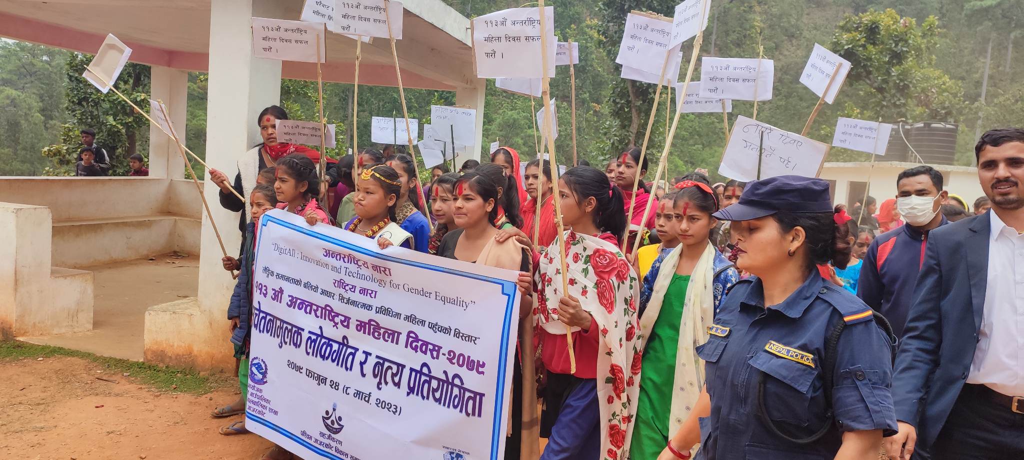 जाजरकोट ः एक सय १३औँ अन्तर्राष्ट्रिय नारी दिवसका अवसरमा जाजरकोटको शिवालय गाउँपालिकामा आयोजित कार्यक्रममा सहभागीहरु । संघीयता पछि गाउँ ,गाउँमा नारी दिवस मनाउन सुरु गरिएको छ । महिलाहरुले आफ्नो हक , अधिकारको विषयमा खुलेरै बोल्ने मात्र होइन , अन्यय परेकालाई न्याय दिलाउन आफैँ पनि सक्रिय भएका छन् । तस्बिर- शिवालय गाउँपालिका