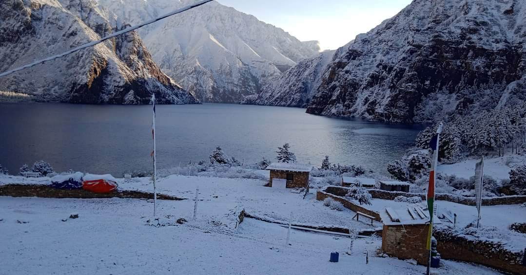 डोल्पा , २० वैशाख ः उपल्लो डोल्पामा दुइ दिन देखि हिमपातले गर्दा जनजीवन प्रभावित भएको छ । विकास निर्माणको अनुगमण तथा निरीक्षणका कामहरु समेत हिमपातमै सुरु भएका छन् ।