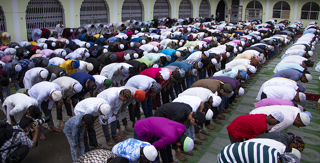 बकर ईद (इदुल जोहा) को अवसरमा घण्टाघर स्थित मस्जितमा नमाज पढ्दै मुस्लिम धर्मालम्वीहरु