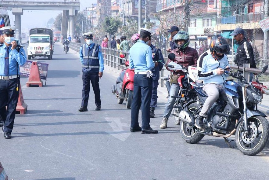 ट्राफिक प्रहरीको लापसे चेकिङ ः चालु आर्थिक वर्षमा १ सय ४९ जना चालकहरू नियन्त्रणमा