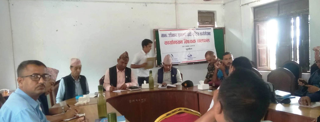 मानव अधिकार जिल्ला समन्वय समितिको बैठकमा स्थानीय तहमा गठन हुनुपर्ने मानव अधिकार समिति गठनमा लापरबाही भएको विषयमा छलफल भएको थियो। स्थानीय तहमा पालिका प्रमुख वा अध्यक्षको संयोजकत्वमा समिति गठन हुनुपर्ने प्रावधान छ। वीरेन्द्रनगर नगरपालिका, पञ्चपुरी नगरपालिका, सिम्ता गाउँपालिकालगायतमा समिति गठन भएको छ।