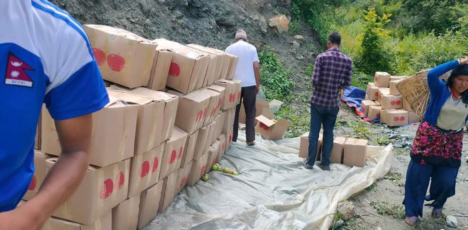 ‘बगैँचा नै राताम्य हुने स्याउ फलेको छ, डोल्पामा सबै स्याउ खपत हुने ठूलो बजार छैन, जिल्लाबाहिरका बजारमा लैजाउँ भने कच्ची बाटो र ठाउँठाउँमा पुल नहुँदा एक दर्जनभन्दा धेरै ठाउँमा गाडी परिवर्तन गर्नुपर्छ, यसरी लैजाँदा स्याउको मूल्यभन्दा ढुवानी रकम धेरै हुन्छ,’ उनले भने, ‘डोल्पासम्म सडकको राम्रो सुविधा भएको भए बर्सेनि लाखौँ रुपैयाँ डोल्पाली कृषकले कमाउँथे, जिल्लाबाहिरबाट काँचै स्याउ सस्तो मूल्यमा किन्ने व्यापारी त आएका छन्, भनेजतिको मूल्य नपाइने भएकाले बिक्री गरेको छैन्।’