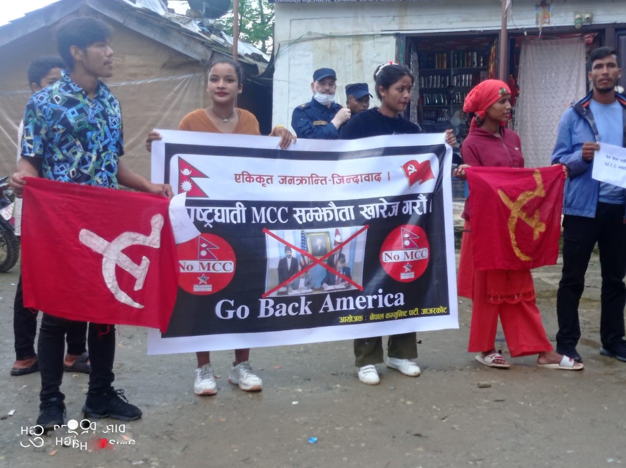 एमसीसी राष्ट्रको हितमा नभएको र अमेरिकी साम्राज्यबाद विस्तारका लागि गरिएको कदम भएको भन्दै प्रर्दशन गरिएको छ । एमसीसीका विरुद्धमा सबै नेपाली जनता एक हुनुपर्ने वेला आएको नेकपा जाजरकोटका सेक्रेटरी विराजन शाहीले जानकारी दिए ।