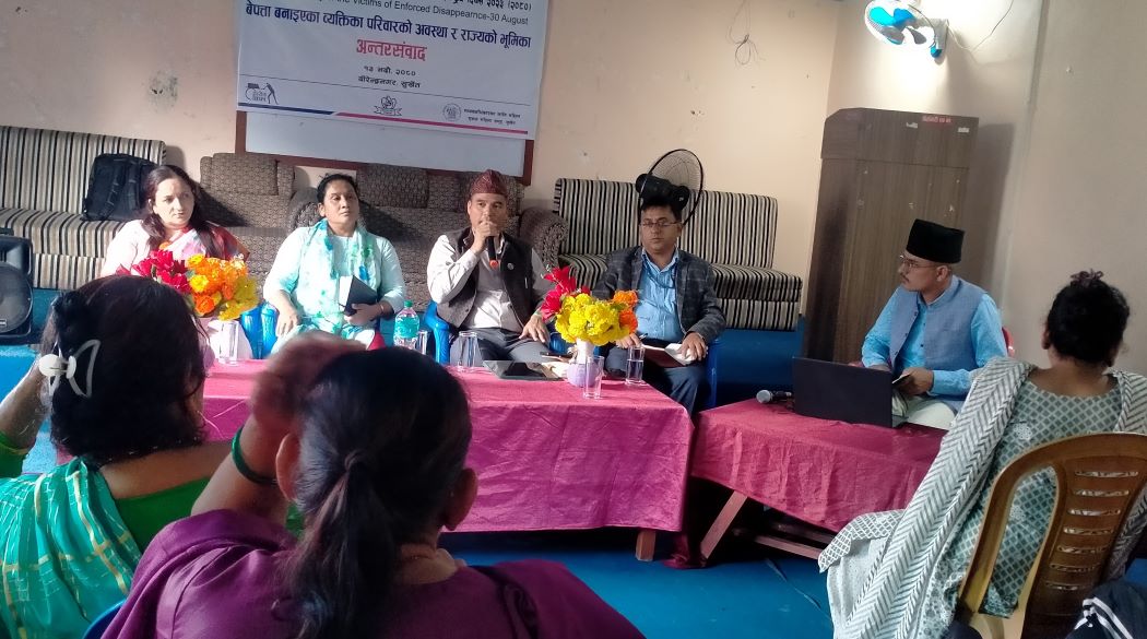 जबसम्म दण्डहीनताको अन्त्य हुँदैन, तबसम्म यस्ताखालका घटना नरोकिने तर्क उहाँले गर्नुभयो । बुधवार बलपूर्वक बेपत्ता पारिएका पीडितहरूको १३ औँ अन्तर्राष्ट्रिय दिवसको अवसरमा बेपत्ता बनाइएका व्यक्तिका परिवारको अवस्था र राज्यको भूमिका विषयमा छलफल भएको छ । गोरखापत्र