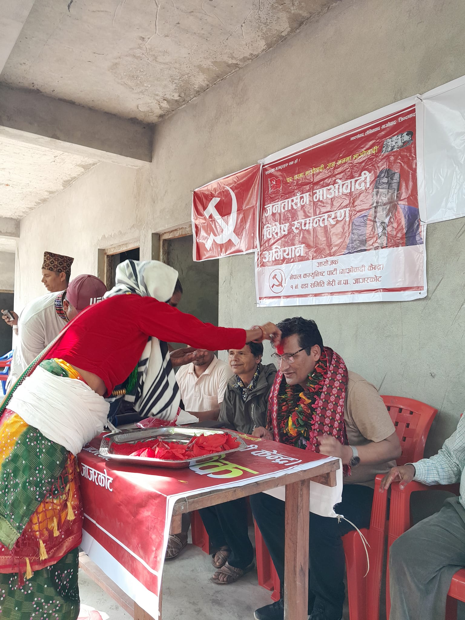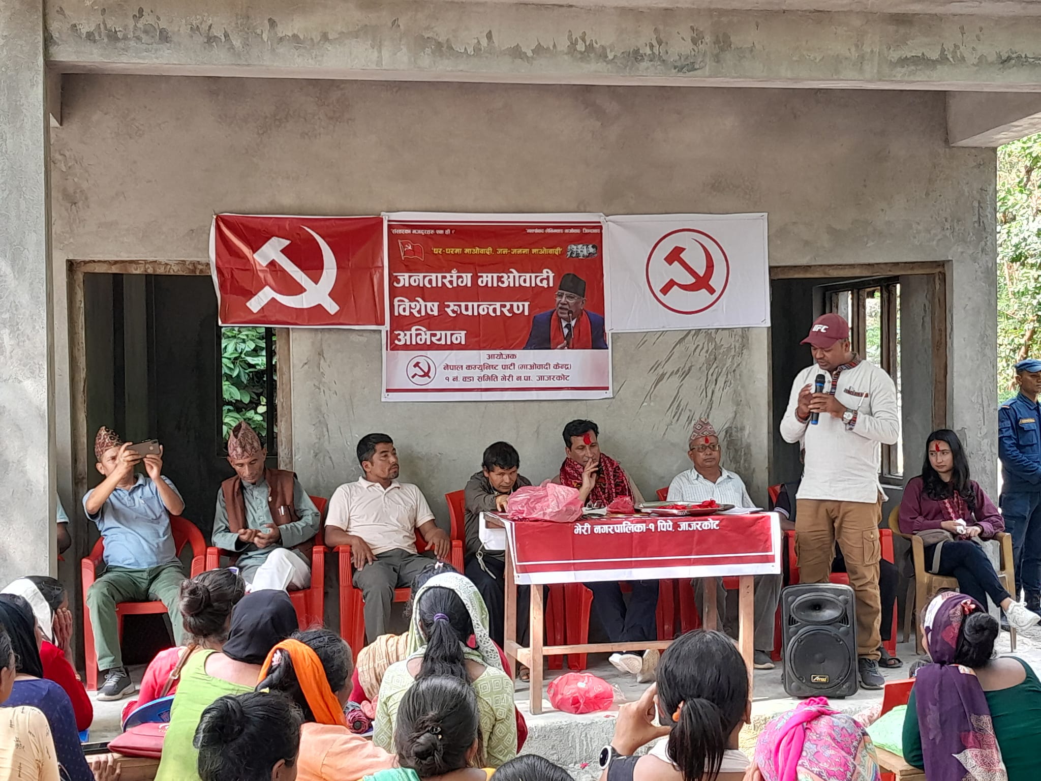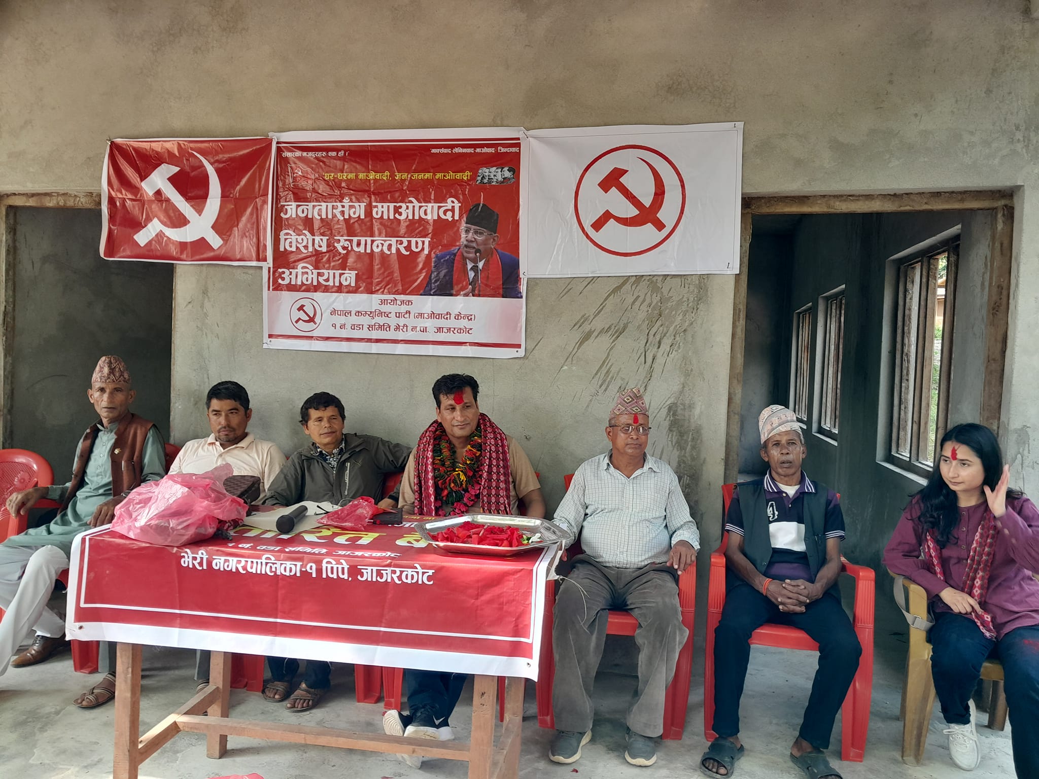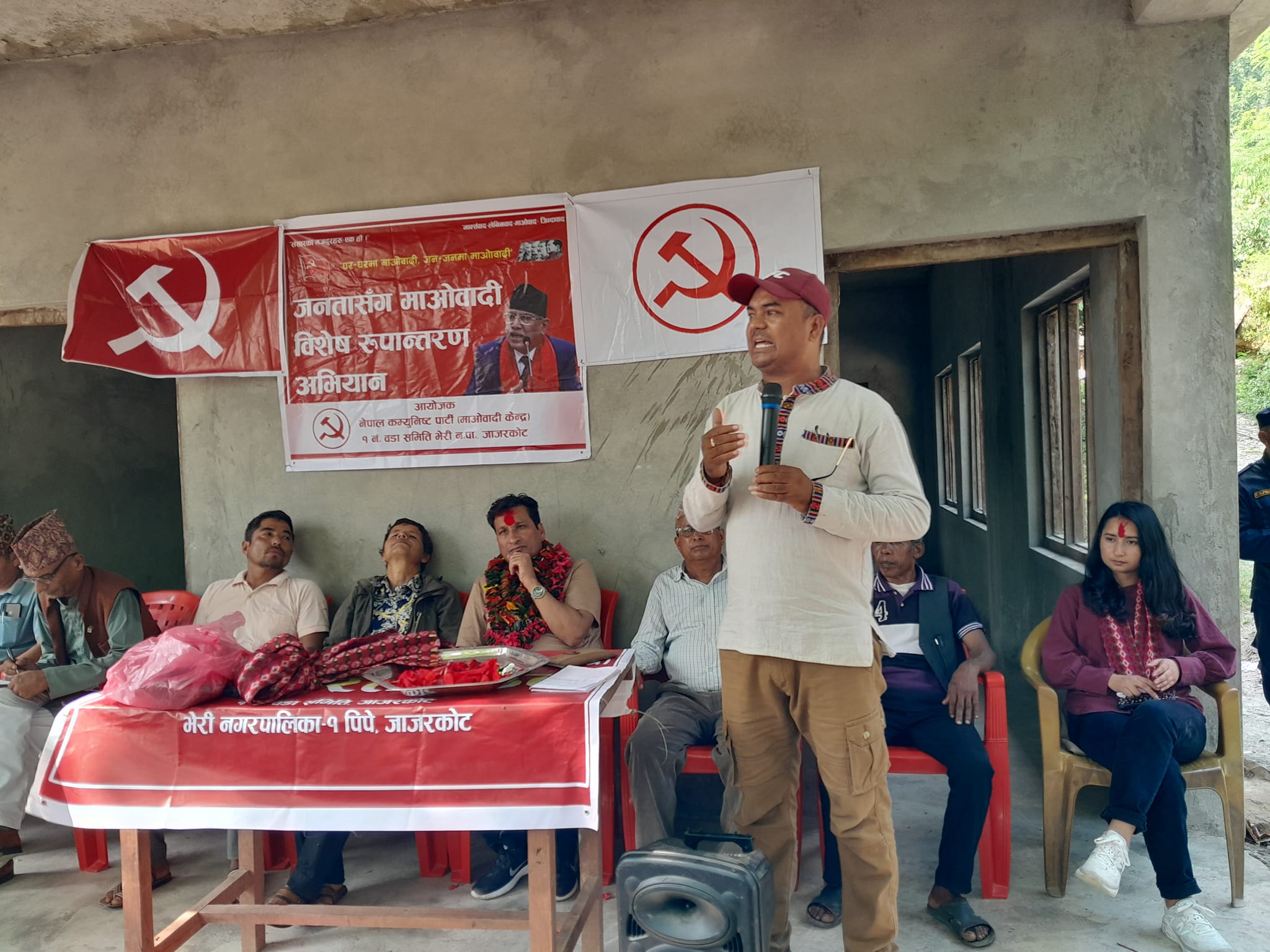 जाजरकोट ः नेकपा (माओवादी केन्द्र ) को जनतासँग माओवादी बिशेष रुपान्तरण अभियानको सिलसिलामा आफ्नो वडाको कार्यक्रममा सहभागी हुनुहुदै पार्टिका उपमहासचिव तथा नेपाल सरकारका उर्जा जलस्रोत तथा सिचार्इ मन्त्री माननीय शक्ती वहादुर वस्नेत ज्यु ,