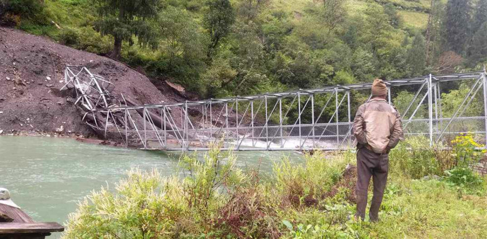 जुम्ला — जुम्लाको कनकासुन्दरी गाउँपालिका–१ बुम्रामाडिचौरको हिमा नदी माथिको ट्रस पुल बाढीले क्षति पुर्याउँदा आवतजावत ठप्प भएको छ । पुल बगाएपछि निकै समस्या भएको स्थानीयले बताएका छन् ।