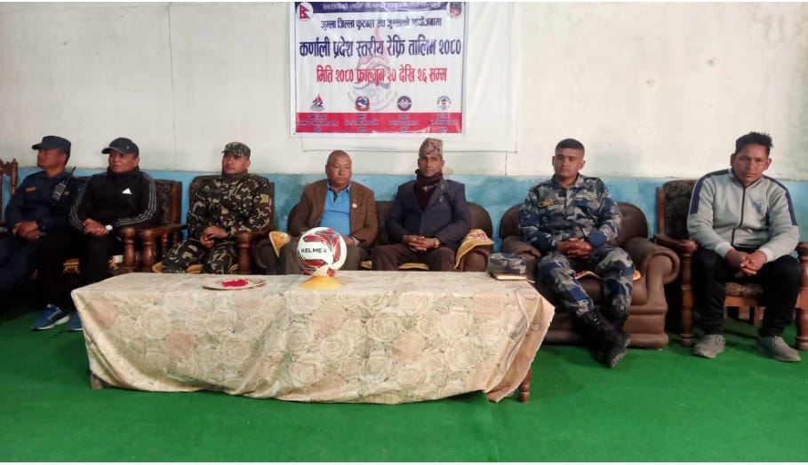 जुम्लामा सात दिनसम्म सञ्चालन भएको फुटबलको रेफ्री तालिमबाट १६ जनाले ब्याज पाएकाे जुम्ला जिल्ला फुटबल संघका महासचिव दिपेन्द्र हमालले बताए । हमालका अनुसार, जम्मा ३६ जना सहभागी भएको तालिमबाट १६ जनाले ब्याज पाउन सफल भएका हुन । ‘बागमती अञ्चलपछि जुम्लामा पहिलोपटक रेफ्री तालिम सञ्चालन हुनु ऐतिहासिक पक्ष थियो,’ उनले भने, ‘तालिमपछि यति धेरै रेफ्रीले ब्याज पाउनु अर्को ऐतिहासिक पक्ष हुन पुगेको छ।’लाइसेन्स प्राप्त रेफ्री नभएको कर्णालीमा भएको तालिमबाट ब्याज पाउने रेफ्रीले आगामी दिनमा हुने फुटबल प्रतियोगिताका लागि रेफ्रीको अभावलाई पूरा गर्ने जुम्ला जिल्ला फुटबल संघका अध्यक्ष भरत बुढाथापाले बताए।