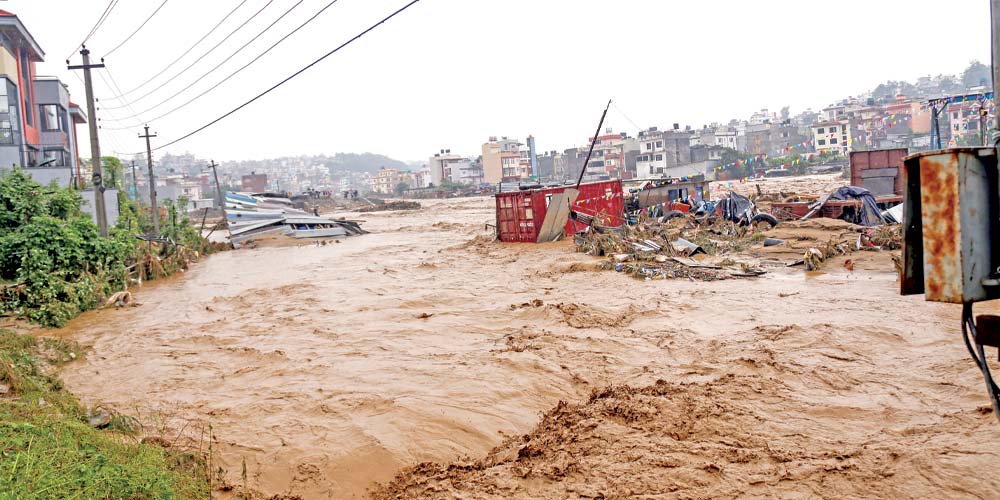 काठमाडौँ ः बिहीबार रातिदेखि परेको अविरल घनघोर वर्षाका कारण ठुलो जनधनको क्षति भएको छ । सङ्घीय राजधानी काठमाडौँसहित देशका अधिकांश भागको जनजीवन अस्तव्यस्त भएको छ । पछिल्लो २४ घण्टामा मात्र बाढीपहिरो र डुबानमा परी ९० जनाको मृत्यु भएको छ भने ७२ जना बेपत्ता छन् । देशका विभिन्न भागबाट दुई हजार ८६० जनाको उद्धार गरिएको छ ।