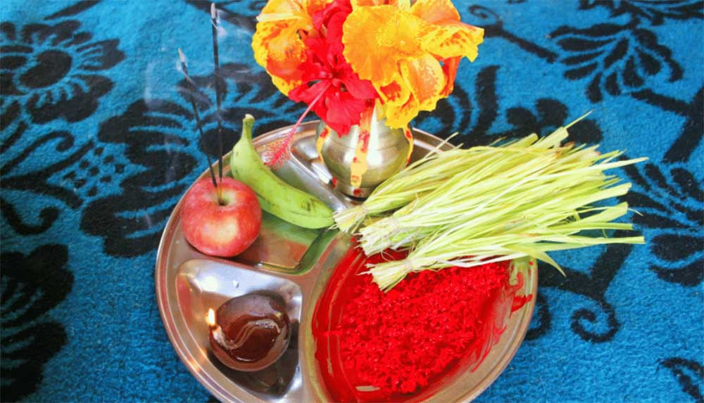 ॐ बक्रतुण्ड महाकाय, सुर्यकोटी समप्रभ, निर्भिग्नमं कुरुम्नं देव सर्वकार्य सुसर्वदा भनेर फुल अक्षता गणेश भगवानलाई अर्पण गर्नुहोला ।
