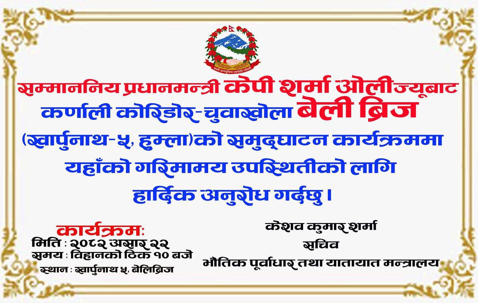 खार्पुनाथ गाउँपालिका(५ मा रहेको उक्त पुल उद्धाघटन भएसँगै हुम्ला सदरमुकाम औपचारिक रूपमा राष्ट्रिय सडक सञ्जालमा जोडिनेछ ।