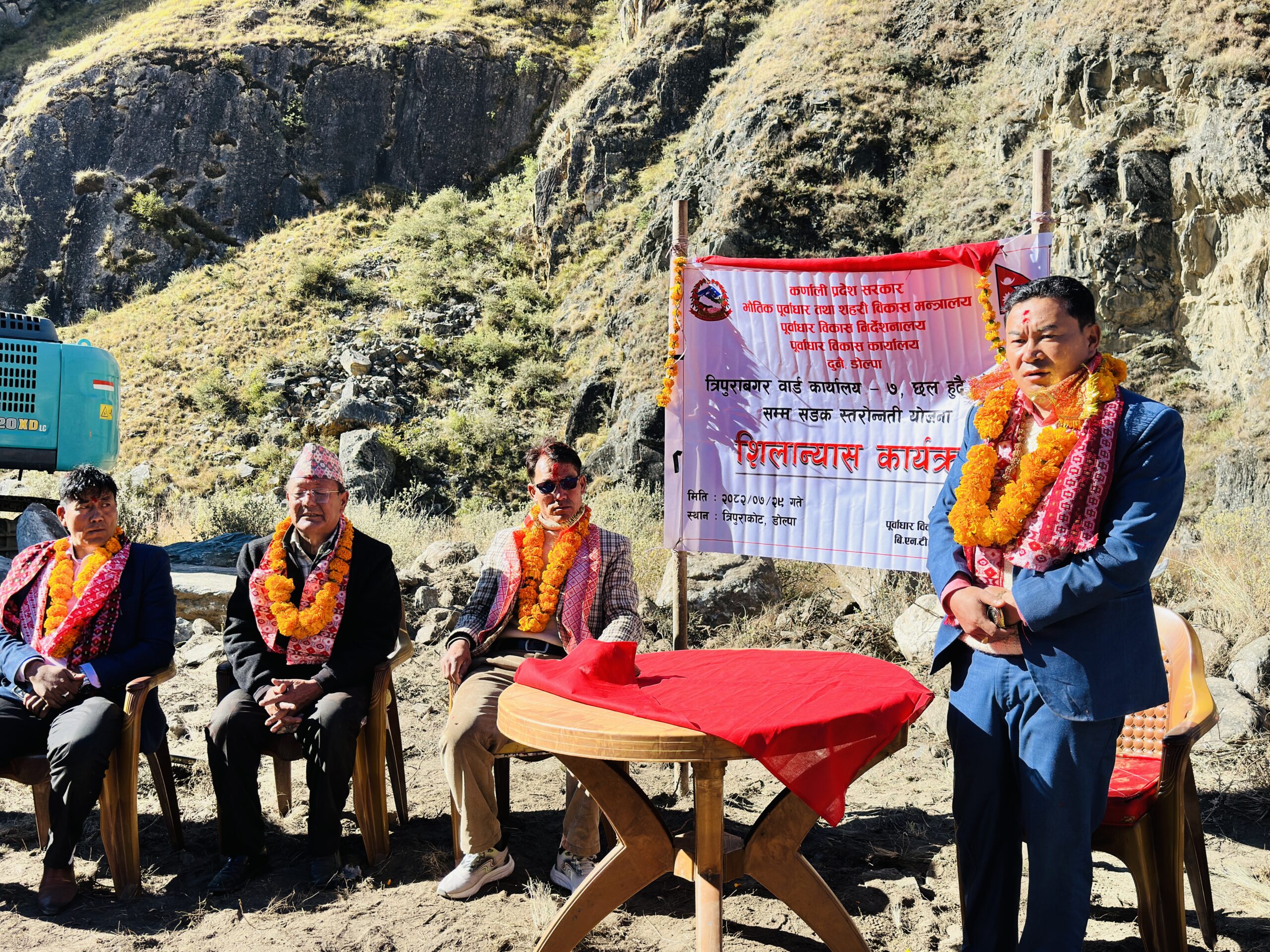 डोल्पा ः डोल्पाको ठुलो व्यापारिक केन्द्र त्रिपुराकोट नगरपालिका–१ त्रिपुराकोटबाट जुम्ला सडक जोडनका लागि झण्डै २५ करोड भन्दा बढी लगानीमा काम सुरु भएको छ । रुकुम पश्चिमको आठबीसकोट नगरपालिका–६ त्रिबेणीबाट जुम्ला जोडने सडक निर्माण कार्य भइसकेको सन्दर्भमा अर्को रुटबाट पनि जुम्ला जोडने कामको सुरुवात गरिएको छ ।