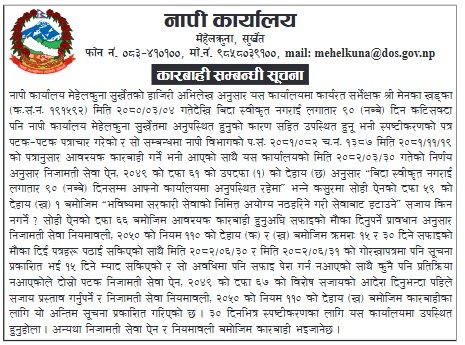 नापी कार्यालय सुर्खेतकी सर्भेक्षकलाई कारबाहीको तयारी, ३० दिने स्पष्टीकरण सोधियो